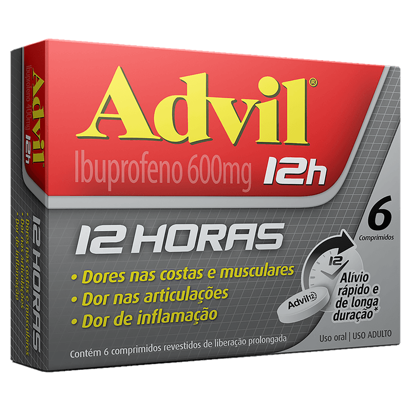 Advil 12h é um medicamento isento de prescrição médica. Recomenda-se seguir rigorosamente a posologia indicada e consultar um profissional de saúde em caso de dúvidas ou persistência dos sintomas. Medicamento genérico conforme a lei n.º 9.787/99. Leia a bula antes de usar e mantenha fora do alcance de crianças.