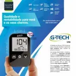 O G-Tech Lite é um medidor de glicose portátil, com sistema prático e higiênico que permite o descarte das tiras de teste sem contato direto com a pele, oferecendo mais segurança durante o uso.