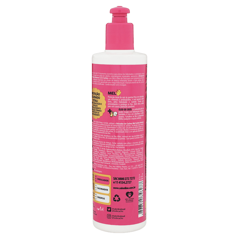 O ativador de cachos tem a função de ativar e definir os cachos de maneira mais especificas, deixando o cabelo muito mais definido. O Ativador de Cachos Intensos Salon Line possui uma fórmula exclusiva para os cabelos com molinhas pequenas e que necessitam de hidratação e nutrição super intensas. Com Cera de Abelha que possui propriedades amaciadoras e antioxidantes, e Óleo de Coco, repleto de ácidos graxos, ideais para hidratação. O Ativador S.O.S Cachos Intensos é tudo que os seus crespinhos precisavam para ficarem ainda mais brilhosos, de nidos e nutridos. Condicionador sem enxágue.