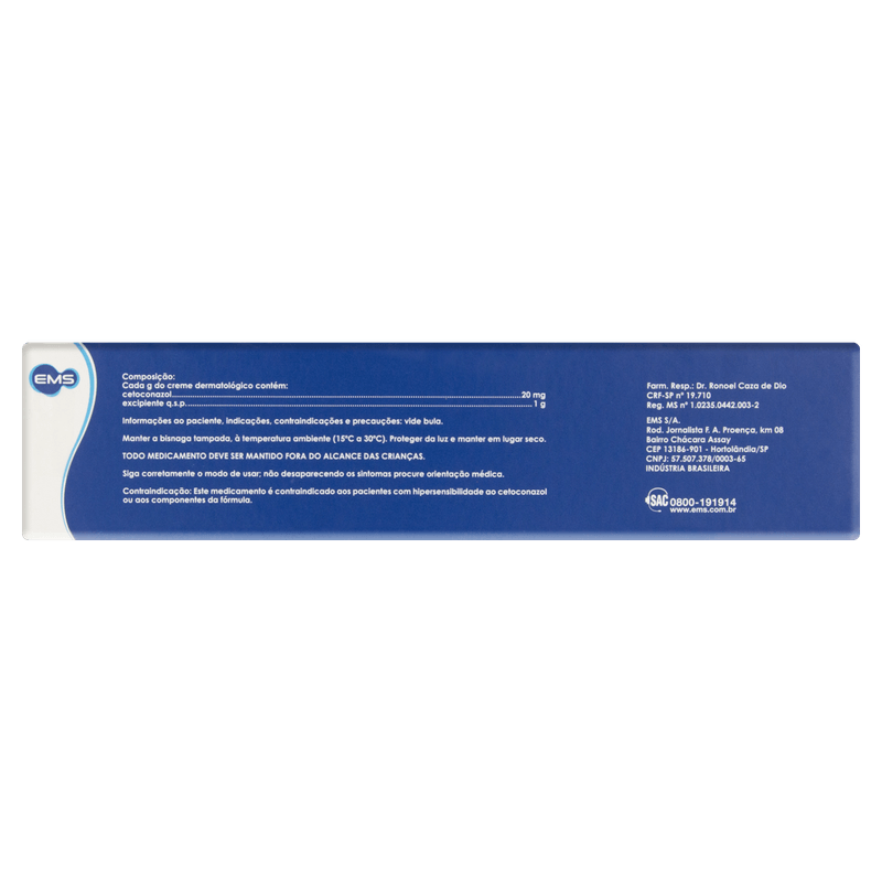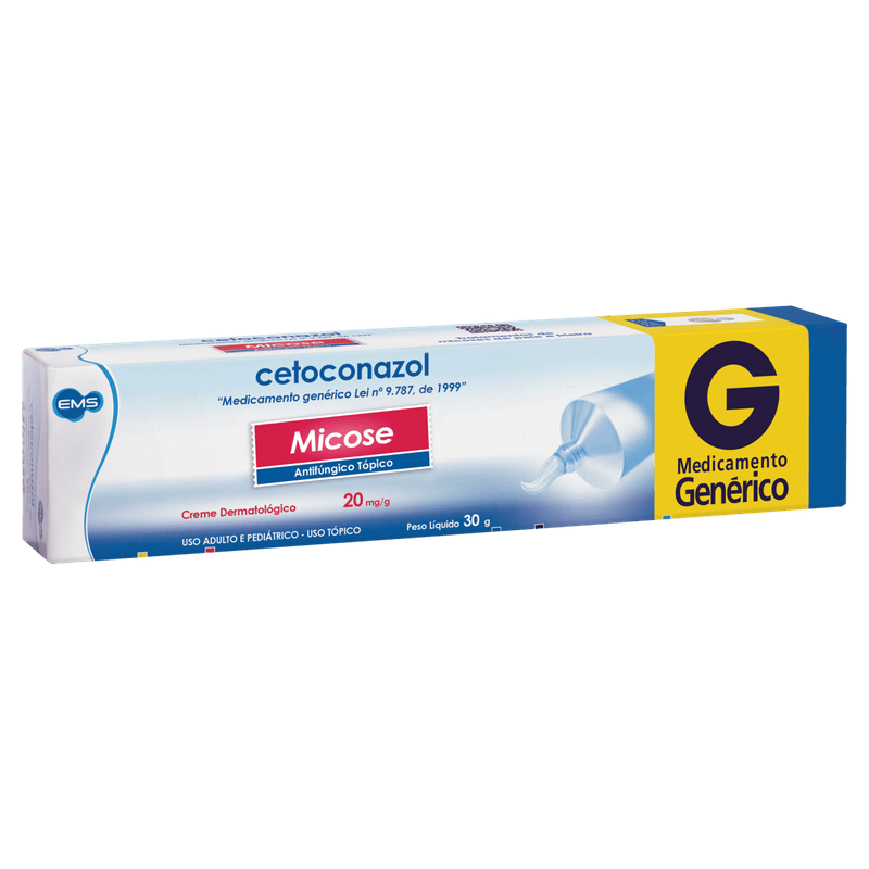 O Cetoconazol 20mg Creme Dermatológico 30g - Genérico - EMS é um medicamento antimicótico indicado para o tratamento eficaz de infecções fúngicas na pele, como micoses, frieira, pano branco e candidíase cutânea. Seu princípio ativo, o cetoconazol, combate fungos e leveduras, aliviando sintomas incômodos como coceira e vermelhidão, promovendo conforto e recuperação da pele. Ideal para adultos e crianças, oferece uma solução prática e confiável para quem busca tratar infecções dermatológicas com segurança.