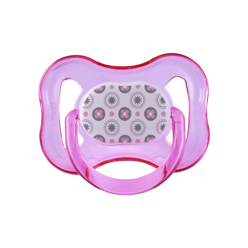 A Chupeta Ortodôntica Infantil Kuka N02 Decorada Silicone Rosa é um acessório para bebês, apresentada com escudo transparente decorado em tons de rosa e pequenos corações roxos. Indicada para recém-nascidos e bebês, sua principal finalidade é proporcionar conforto e segurança, auxiliando no desenvolvimento correto da arcada dentária.