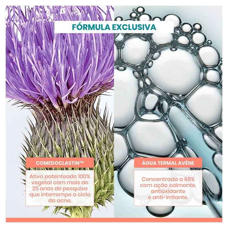 O tratamento revolucionário para uma pele com tendência à acne que reduz acne em sete dias* e limita seu reaparecimento graças à Comedoclastin™, um ingrediente ativo com base em plantas extraído do cardo mariano, com propriedades patenteadas.