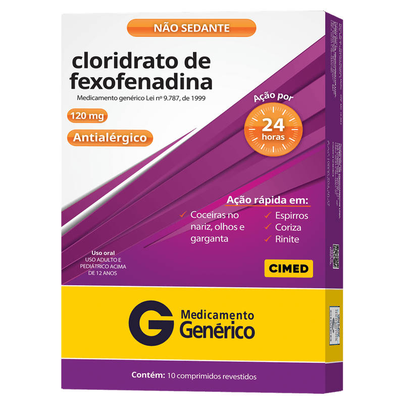 Cada comprimido contém 120mg de cloridrato de fexofenadina, com excipientes como celulose microcristalina, amido e estearato de magnésio. Apresenta-se em comprimidos revestidos, com embalagem contendo 10 unidades. Indicado para o tratamento das manifestações alérgicas respiratórias e cutâneas, atua especificamente na redução dos sintomas da rinite alérgica e urticária, proporcionando alívio prolongado e conforto ao paciente. Venda sob prescrição médica.