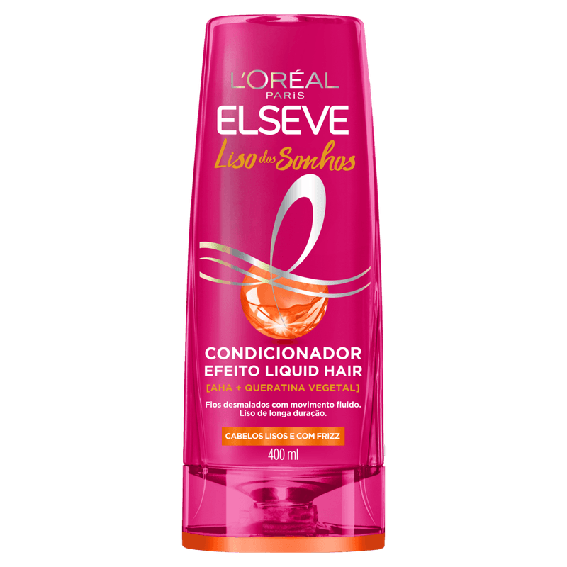 O Condicionador efeito liquid hair sela e restaura a superfície da fibra para um liso com efeito liquid hair: desmaiado, com movimento super fluido e brilho intenso. Enriquecido com AHA + queratina vegetal, Elseve liso dos sonhos é o nosso 1º tratamento efeito botox* em casa que transforma os fios para 1 semana de cabelos lisos e à prova de umidade. *Efeito botox de Elseve cabelos lisos, reparados e sedosos.