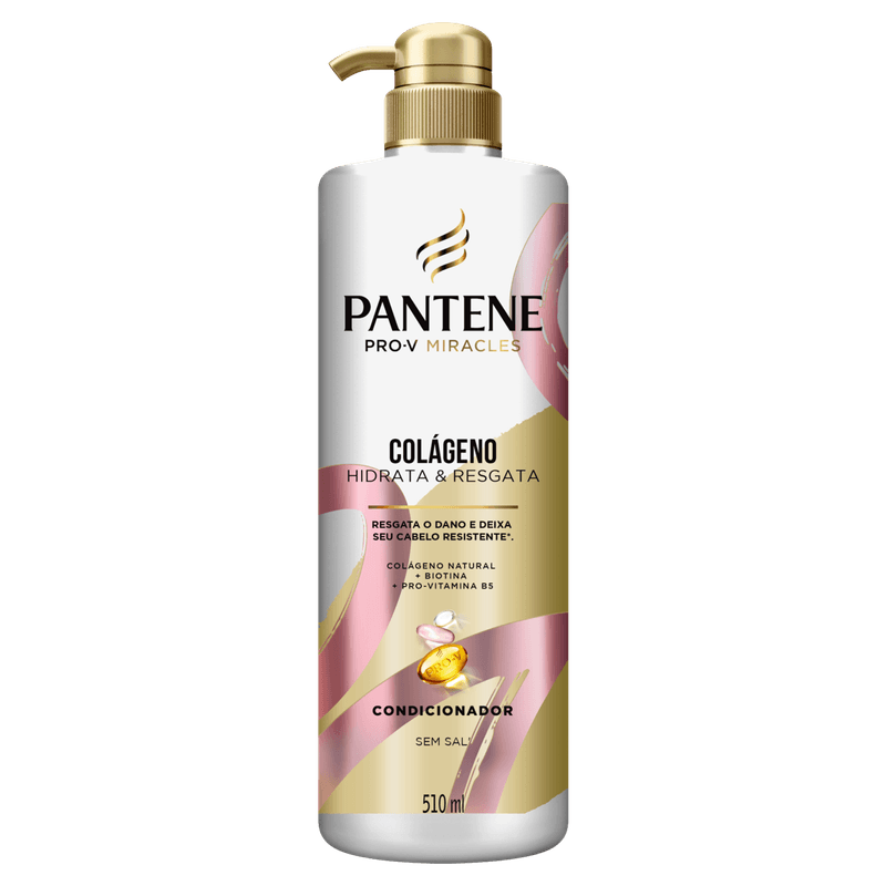 Modo de Usar: Molhe o cabelo, aplique o condicionador Pantene Colágeno Hidrata & Resgata, massageando suavemente. Enxágue completamente. Use após o shampoo para melhores resultados.