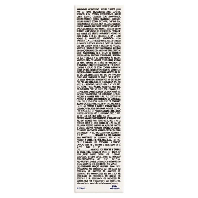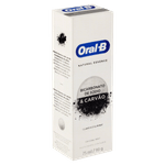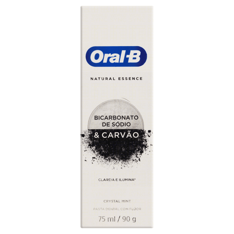 O Creme Dental Natural Essence 90g da Oral-B é uma pasta de dente com flúor que combina bicarbonato de sódio e carvão para clarear e iluminar os dentes, além de proteger o esmalte e prevenir cáries, promovendo higiene bucal eficaz.