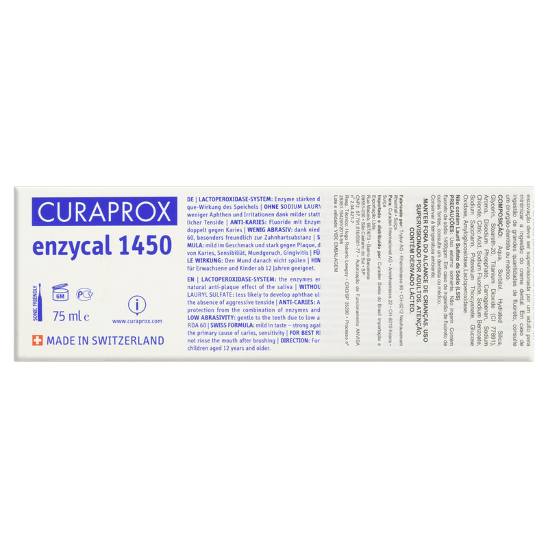 Curaprox Enzycal 1450 é um creme dental desenvolvido à base de enzimas similares às presentes na saliva, que é a nossa proteção natural contra fungos, vírus e bactérias.