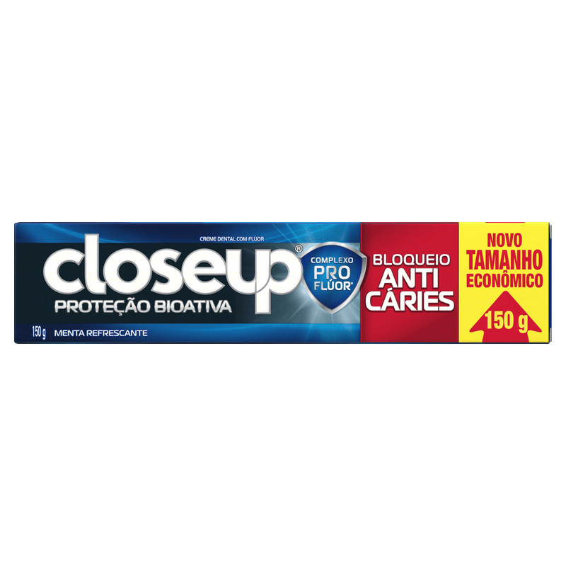 Creme Dental Menta Refrescante Closeup Proteção Bioativa Bloqueio Anticáries Caixa 150g Tamanho Econômico