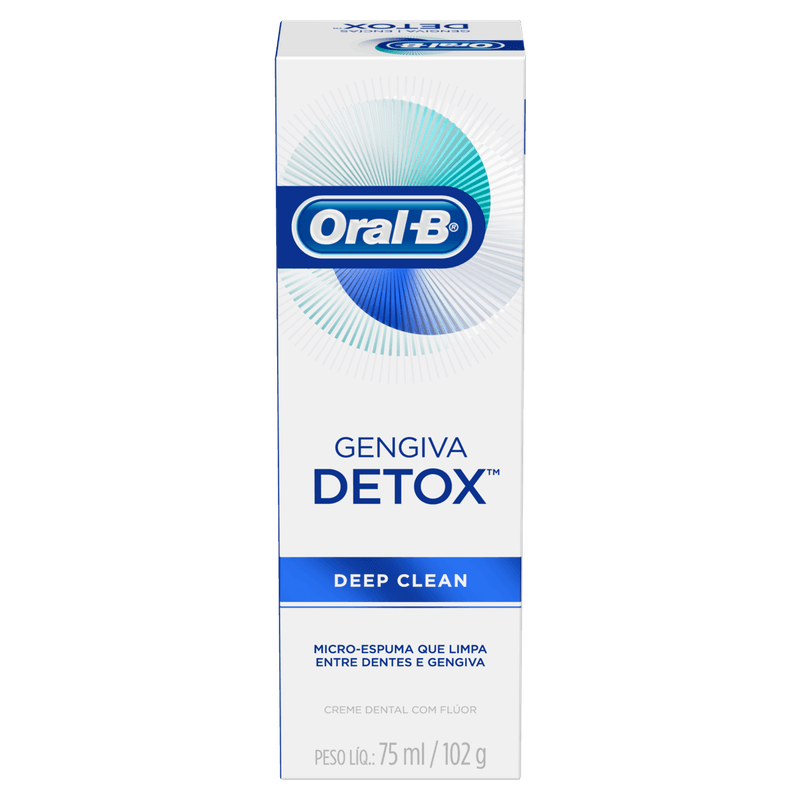 O Creme Dental Oral-B Gengiva Detox Deep Clean 102g é uma pasta de dente indicada para a limpeza profunda entre dentes e gengivas, ajudando a eliminar bactérias que causam placa e promovendo gengivas mais saudáveis.