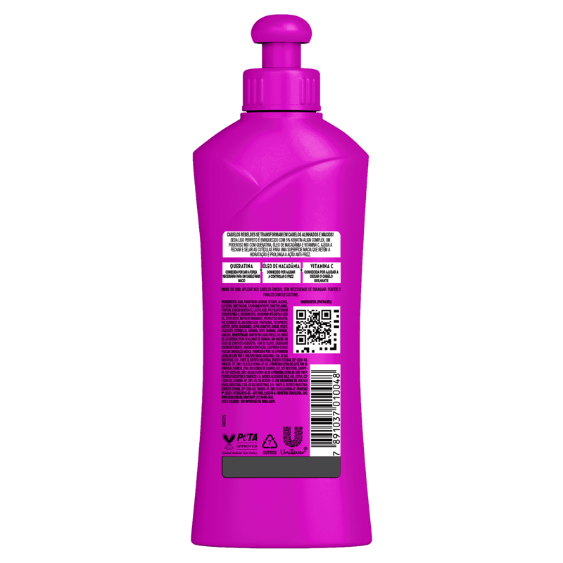 Composição: Aqua, paraffinum liquidum, cetearyl alcohol, glycerin, dimethicone, stearamidopropyl dimethylamine, parfum, polyquaternium crosspolymer-3, methylparaben, DMDM hydantoin, disodium EDTA, hydrolyzed silk, alpha-isomethyl ionone, benzyl salicylate, butylphenyl methylpropional, citronellol, geraniol, hexyl cinnamal, isoeugenol, limonene, linalool, lactic acid.