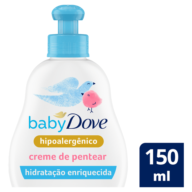 O Creme para Pentear Infantil Hidratação Enriquecida Dove Baby é apresentado em frasco de 150 ml, indicado para crianças a partir de 3 anos. Desenvolvido para hidratar e facilitar o desembaraço dos cabelos infantis, oferece cuidado delicado para o couro cabeludo e fios, promovendo maciez e proteção.