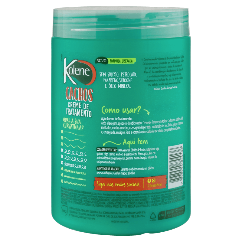 A Máscara de Tratamento Kolene Cachos possui fórmula 100% vegana e liberada, isto é, faz uma limpeza mais suave porque não possui ação surfactante. Por isso, é perfeita para quem deseja manter a beleza natural e a personalidade dos cabelos cacheados e crespos. Contendo manteiga de abacate e colágeno vegetal, a Máscara de Tratamento Kolene Cachos trata profundamente os fios, em toda a sua extensão, evitando a formação de frizz e deixando os cabelos nutridos, brilhantes, macios e com movimento. Para resultados mais efetivos e duradouros, use toda a linha Kolene para cabelos cacheados.