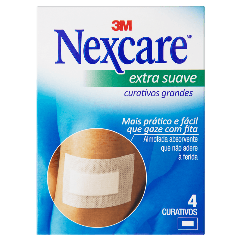 Os Curativos Extra Grandes Suaves Nexcare® são uma solução única para proteção de grandes feridas que um curativo comum não consegue cobrir. Indicados para proteção de feridas como queimaduras, cortes, escoriações e incisões pós-cirúrgicas.