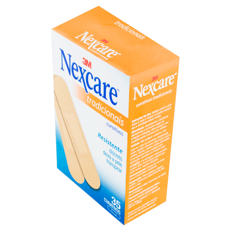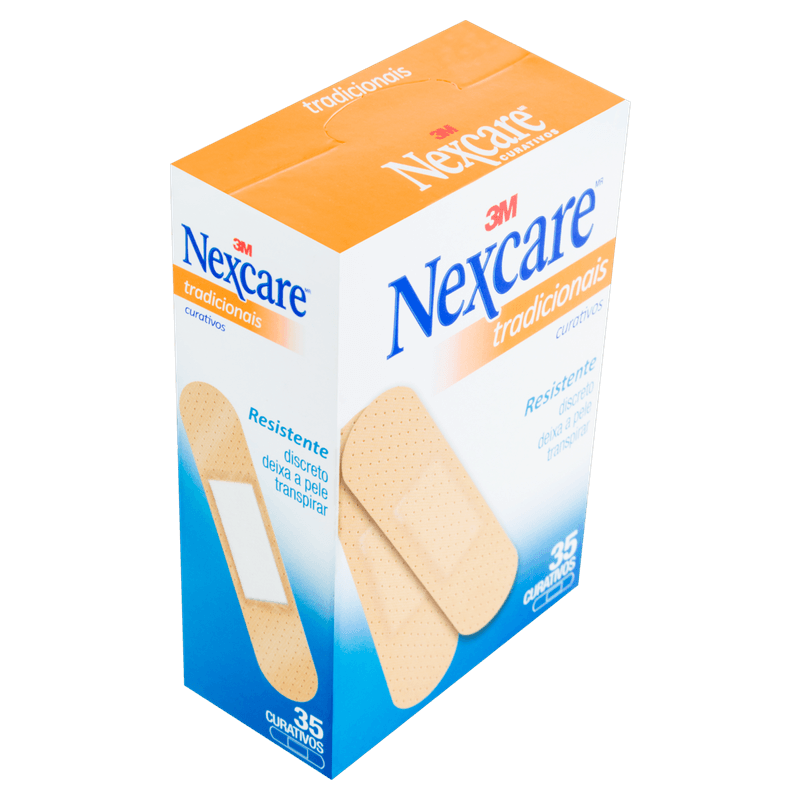 Curativo Tradicional Nexcare é discreto, resistente, confortável e deixa a pele transpirar. Ideal para peles delicada, possui almofada que não gruda na ferida e é facilmente removível.