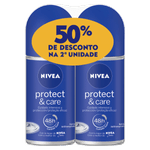 Pack Antitranspirante Roll-On Protect & Care Nivea 2 Unidades 50ml Cada Grátis 50% de Desconto na 2ª Unidade
