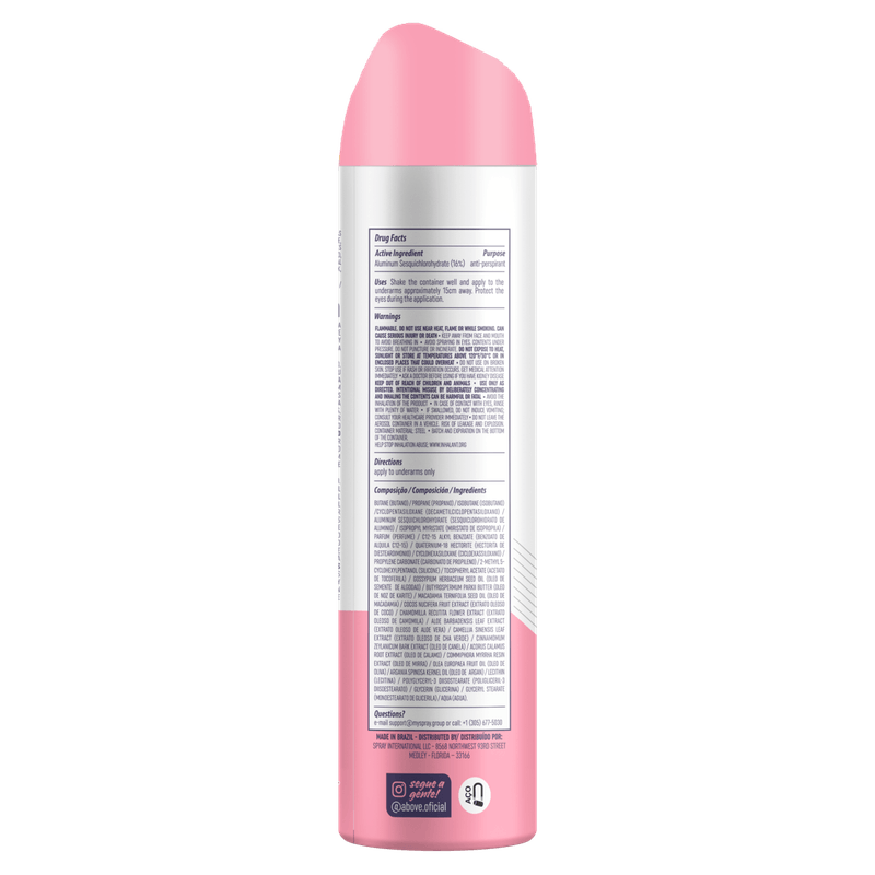 Advertência: Uso externo. Conteúdo sob pressão. Não pulverizar perto de fogo ou corpos incandescentes, não perfurar nem incinerar a embalagem mesmo quando vazia. Não usar nem guardar em locais quentes ou perto de chamas. Não expor aos raios solares nem a temperaturas superiores a 50°C. Evitar a inalação deste produto. Em caso de contato com os olhos, lave com água em abundância. Não usar se a pele estiver irritada ou lesionada. Caso ocorra irritação ou prurido no local da aplicação, deverá suspender o uso. Conserve fora do alcance das crianças e dos animais domésticos. Usar somente nas áreas indicadas. Em caso de ingestão, não provoque vômito e procure um médico. Não deixar a embalagem de aerossol dentro de veículo/risco de vazamento e explosão. Proteja os olhos durante a aplicação.