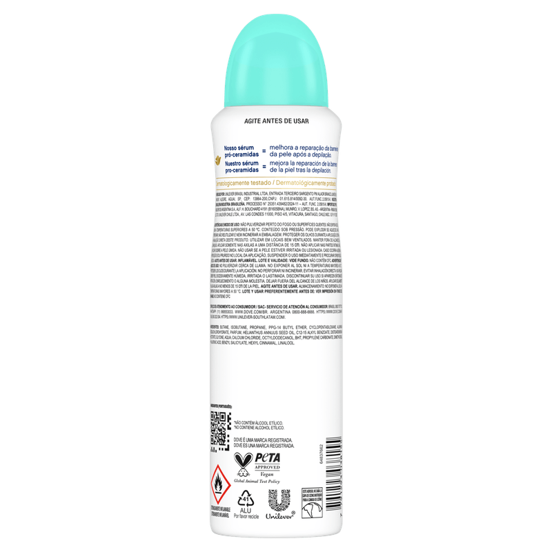 A fórmula suave com 0% de álcool, combinada com o 1/4 de creme hidratante exclusivo de Dove, proporciona 48 horas de proteção e cuidados para a pele de suas axilas, deixando-as mais macias e suaves.