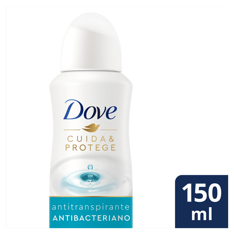 Dove Cuida & Protege Antibacteriano é um desodorante que oferece até 48 horas de proteção antitranspirante com ação antibacteriana, eliminando 99,9% das bactérias causadoras do mau odor nas axilas.