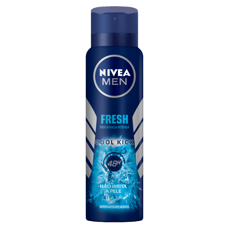 O Desodorante Antitranspirante Aerossol Cool Kick 150ml da Nivea é um desodorante masculino em spray, indicado para proteção antitranspirante e sensação de frescor por até 48 horas, com fragrância suave e revigorante, livre de álcool, corantes e conservantes.