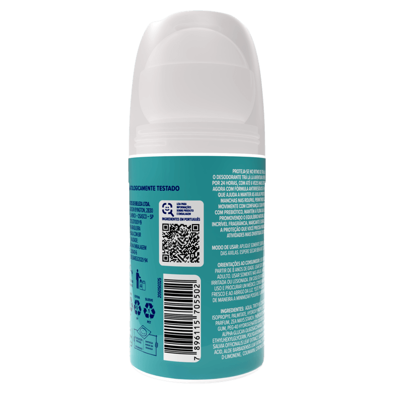 Atenção: Uso exclusivo nas axilas. Não aplicar sobre a pele irritada ou lesionada.
