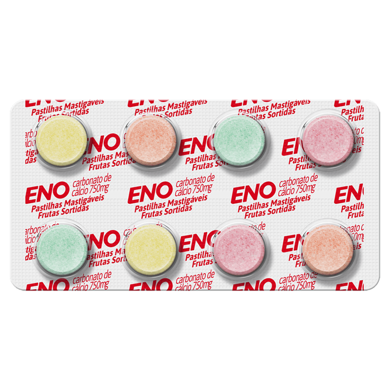 Eno Pastilhas Mastigáveis Frutas Sortidas é um antiácido eficaz que contém 750 mg de carbonato de cálcio por pastilha, proporcionando alívio rápido da azia, queimação, acidez estomacal e má digestão. Com sabor agradável de frutas sortidas, é ideal para adultos e crianças conforme orientação médica, oferecendo praticidade e conforto no cuidado digestivo. Sua fórmula contém corantes e açúcar, garantindo uma mastigação fácil e saborosa.