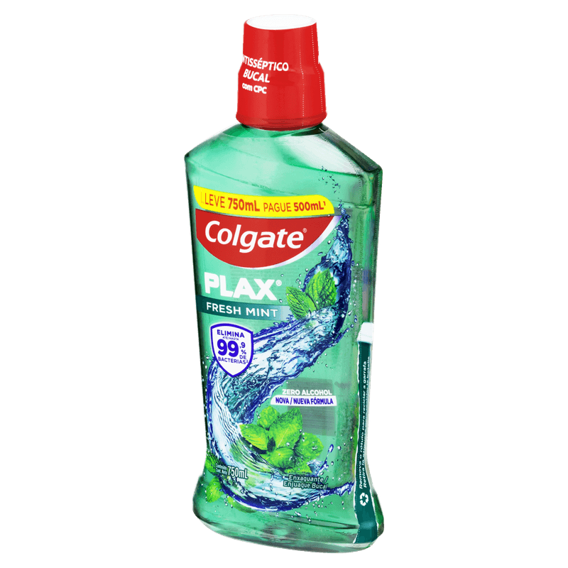 Enxaguante Bucal Zero Álcool Fresh Mint Colgate Plax Frasco Leve 750ml Pague 500ml