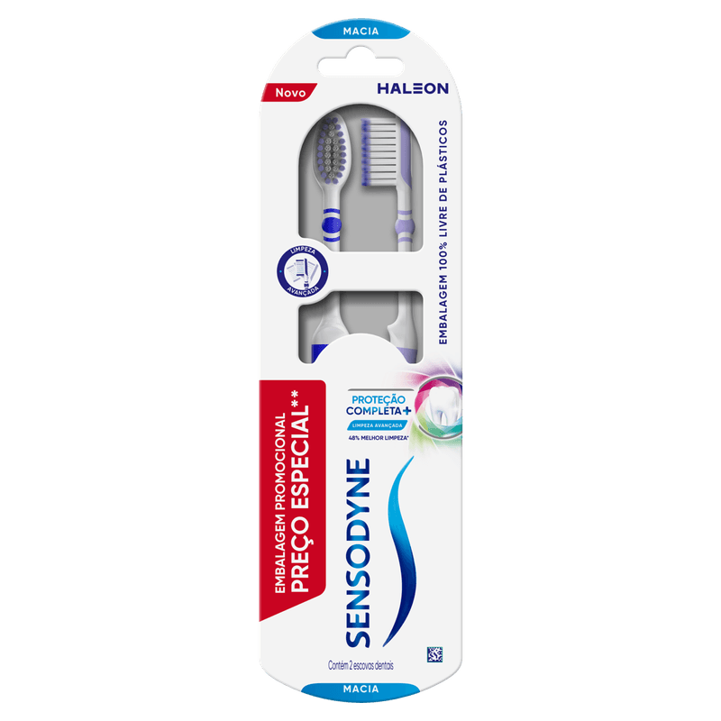 A Escova Dental Sensodyne Proteção Completa oferece uma limpeza avançada. Possui cabeça pequena, haste longa Duoflex para um alcance eficaz, filamentos cônicos que garantem uma limpeza 48% melhor* e cerdas arredondadas para uma limpeza suave e eficaz.