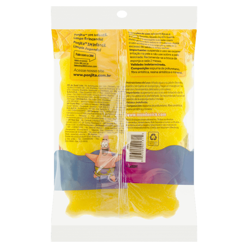 A Esponja de Banho Infantil Ponjita Bob Esponja proporciona limpeza com carinho para a pele das crianças. É uma esponja macia para a pele delicada dos pequenos, com formatos divertidos e impressão na fibra para um banho cheio de brincadeiras.