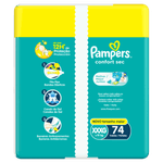 As Fraldas Descartáveis Pampers Confort Sec XXXG oferecem até 12 horas de proteção, garantindo conforto e segurança para bebês acima de 15 kg. Com design anatômico, ajuste elástico nas costas e fitas adesivas flexíveis, proporcionam liberdade de movimento e evitam vazamentos graças às barreiras duplas anti-vazamento. A camada externa respirável e a loção hipoalergênica mantêm a pele seca e saudável, ideal para peles sensíveis. O pacote econômico com 74 unidades é perfeito para famílias que buscam praticidade e custo-benefício.