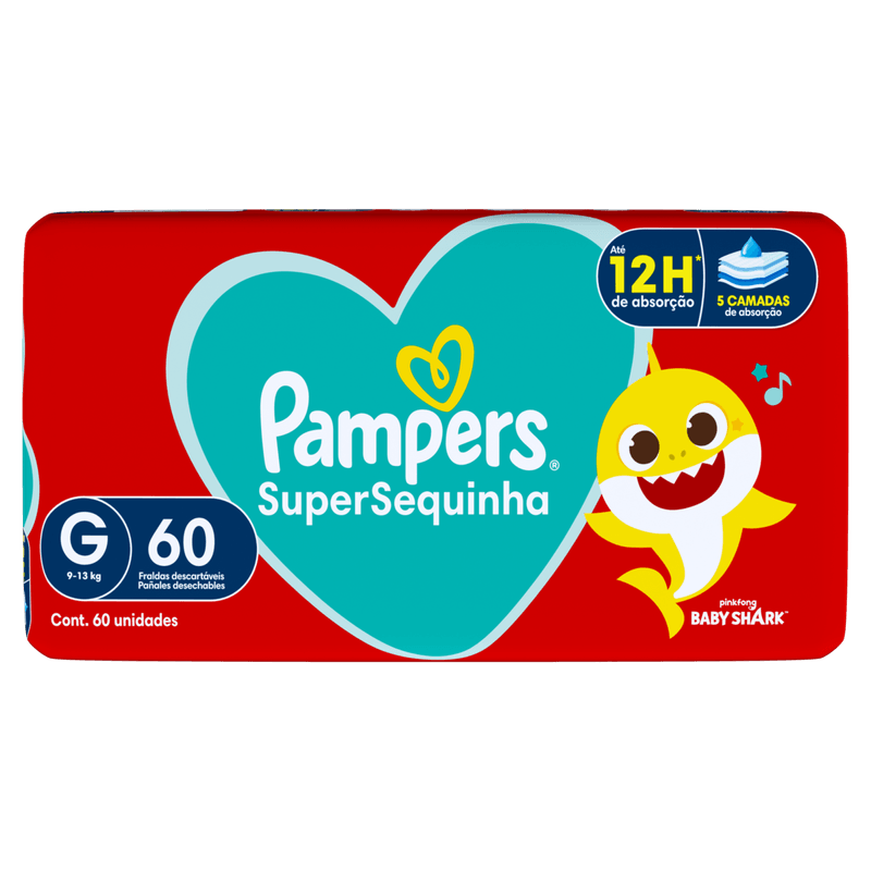A Fralda Descartável Pampers SuperSequinha Baby Shark G é ideal para bebês de 9 a 13 kg, oferecendo até 12 horas de proteção contra vazamentos. Com tecnologia avançada de gel superabsorvente distribuído em três canais e barreiras duplas anti-vazamento, mantém a pele do seu bebê seca e confortável por mais tempo. Seu ajuste flexível com fitas adesivas garante segurança e conforto mesmo com movimentos, enquanto o toque suave e o material hipoalergênico protegem a pele delicada. Além disso, as estampas divertidas do Baby Shark tornam o momento do cuidado mais alegre e especial.