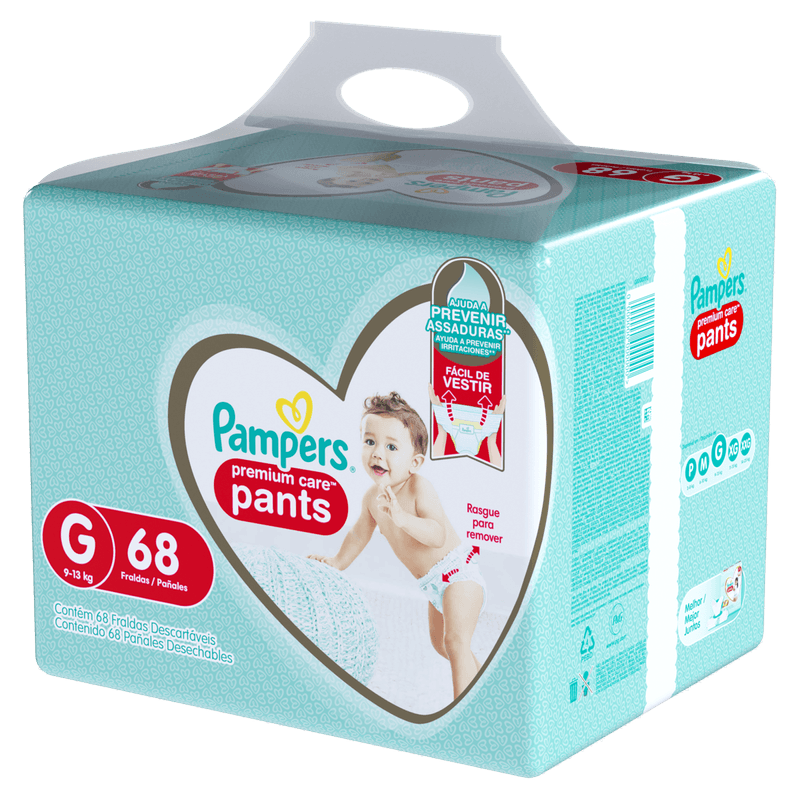 A Fralda Pampers Pants Premium Care G oferece cintura elástica 360° que se ajusta perfeitamente ao corpo do bebê, garantindo conforto e liberdade de movimento. Com design tipo calça, é fácil de vestir e tirar, ideal para bebês ativos. Sua tecnologia ultra-respirável mantém a pele fresca e seca por até 12 horas, enquanto a loção hipoalergênica exclusiva previne irritações e assaduras, tornando-a perfeita para uso diurno e noturno. Indicada para bebês de 9 a 13 kg, é a escolha ideal para pais que buscam proteção, praticidade e cuidado delicado para a pele sensível dos pequenos.