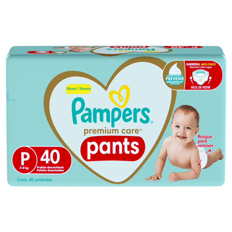 A Fralda Pampers Premium Care Pants P é ideal para bebês de 9 a 8 kg, oferecendo conforto e proteção com sua cintura elástica 360° que se ajusta perfeitamente mesmo com o bebê em movimento. Com canais de ar que mantêm a fralda firme e respirável, ela evita o desconforto causado por fraldas caídas. O indicador de umidade avisa o momento certo para a troca, garantindo até 12 horas de proteção para manter a pele do bebê seca e protegida durante o dia e a noite.