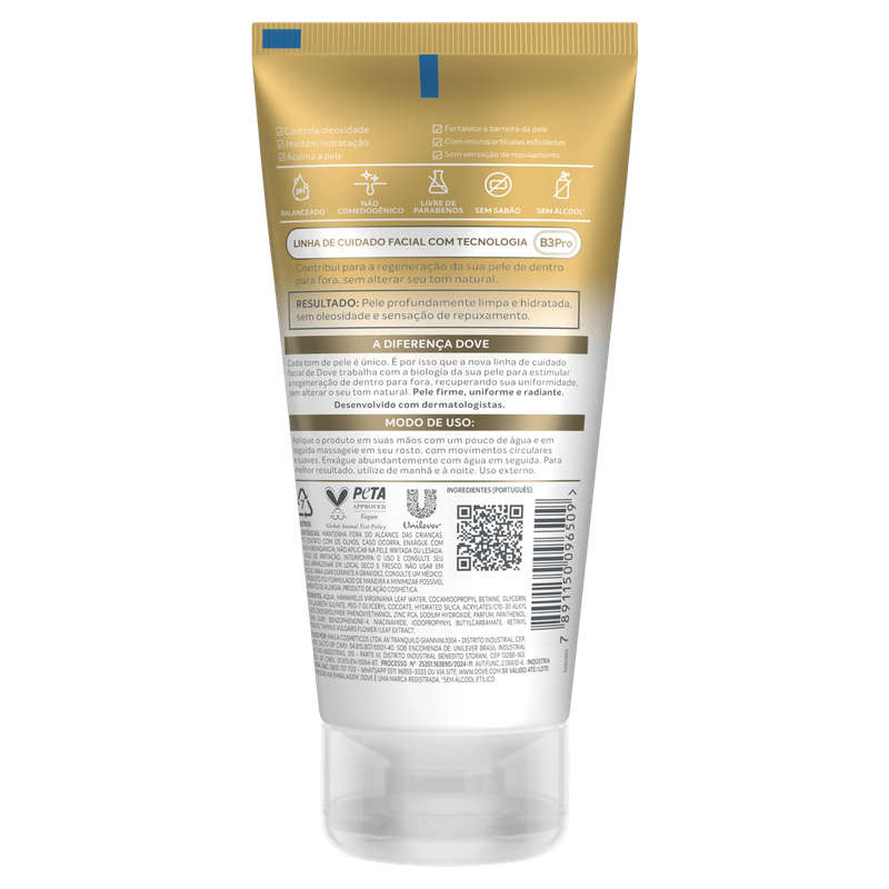 Desenvolvido para todos os tipos de pele, o Gel de Limpeza Dove ajuda a remover impurezas e resíduos, sem ressecar a pele. Seu uso diário proporciona uma pele equilibrada, limpa e com um toque aveludado, sem agredir a barreira natural da pele.