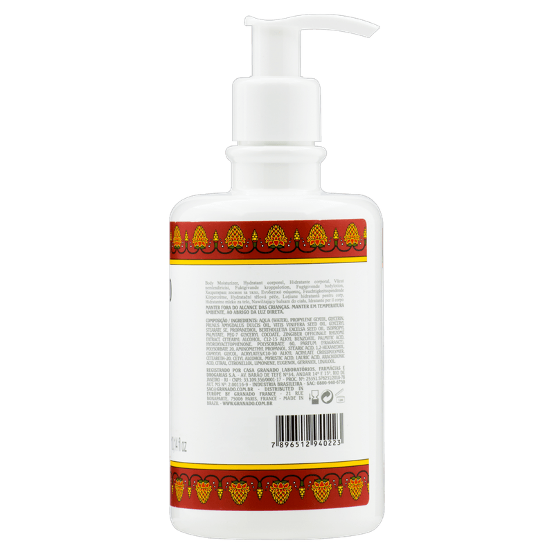 Fórmula especial que retém a umidade da pele por mais tempo, sem deixá-la com aspecto gorduroso. Alta concentração de extratos vegetais e perfumação. Hidrata profundamente a pele protegendo-a contra agressões externas. Sem corantes em sua fórmula, diminui o risco de alergias.