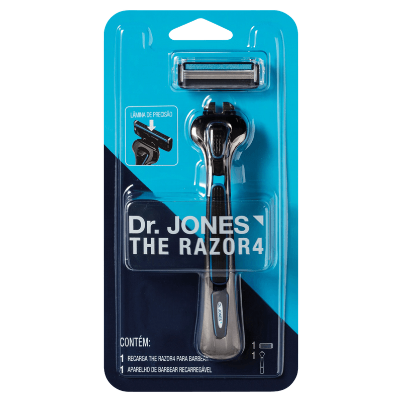O The Razor4 é um aparelho de barbear ideal para quem tem pelos mais grossos ou faz a barba com menos frequência - e, por isso, necessita de mais espaço entre as lâminas. Suas 4 lâminas de aço inoxidável cortam com facilidade os fios mais longos e espessos e permitem uma limpeza posterior mais simples. O The Razor4 possui também cabo emborrachado ergonômico, faixa de proteção, fita lubrificante e um Trimmer, lâmina extra super afiada para acabamentos. Conheça uma nova forma de se barbear!