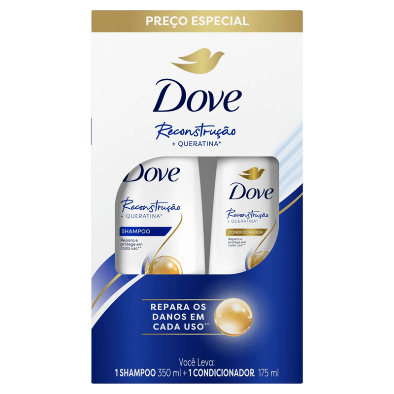 Kit Dove Reconstrução Queratina Shampoo 350ml + Condicionador 175ml