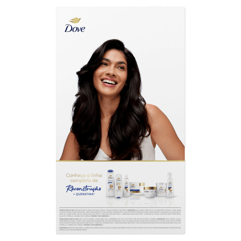 Com o uso contínuo, o Kit Dove Reconstrução Queratina ajuda a reduzir a quebra, proporcionando cabelos mais fortes, duráveis ​​e saudáveis. Ideal para quem deseja revitalizar os fios e devolver sua beleza natural.