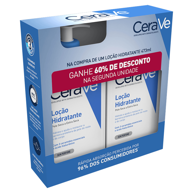 Kit Loção Hidratante Corporal CeraVe é a escolha ideal para quem busca hidratação intensiva e de longa duração para a pele. Com duas unidades de 473ml cada, o kit oferece cuidado completo e eficaz para a pele do corpo, promovendo uma sensação de maciez e suavidade.