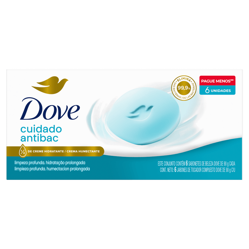 A fórmula suave da barra de beleza de Dove, tem propriedades capazes de eliminarem até 99,9% das bactérias e é enriquecida com exclusivo creme hidratante. Sua fórmula combina a proteção com a hidratação que só Dove proporciona para uma pele incrível. Dove Cuida e Protege oferece uma limpeza suave, perfeita para uso diário, sem agredir a sua pele. Você pode utilizar a barra de beleza de Dove para o rosto, corpo e mãos. Sua fórmula nutritiva com PH neutro hidrata enquanto limpa, para que você não precise se preocupar com o ressecamento da pele. Dove cuida e protege de você para que você possa apreciar a pele macia e suave que você merece.