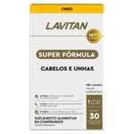 O Lavitan Super Fórmula Cabelos e Unhas é um suplemento alimentar em comprimidos que combina biotina, zinco, selênio, cisteína, vitaminas e minerais essenciais para fortalecer cabelos, pele e unhas. Sua fórmula exclusiva ajuda a reduzir a quebra dos fios, estimular o crescimento saudável e promover a manutenção da saúde desses tecidos, sendo ideal para adultos que buscam melhorar a aparência e resistência dos cabelos e unhas.