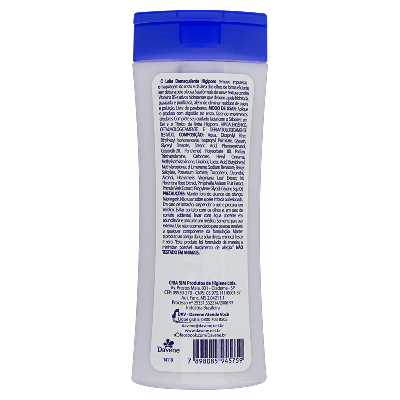 Leite Demaquilante Facial Davene Higiporo Frasco 120ml