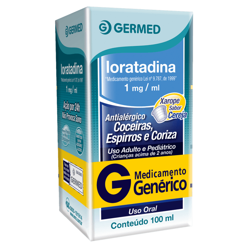 Cada ml do xarope contém 1mg de loratadina, além de sacarose, álcool e excipientes. O produto é apresentado em frasco de 100ml com copo medidor, facilitando a dosagem correta. Indicado para uso oral, possui textura líquida e sabor cereja, tornando a administração mais fácil, especialmente para crianças. A venda é sob prescrição médica, e o medicamento deve ser mantido fora do alcance das crianças. Ideal para quem busca um tratamento seguro e eficaz contra sintomas alérgicos comuns do dia a dia.