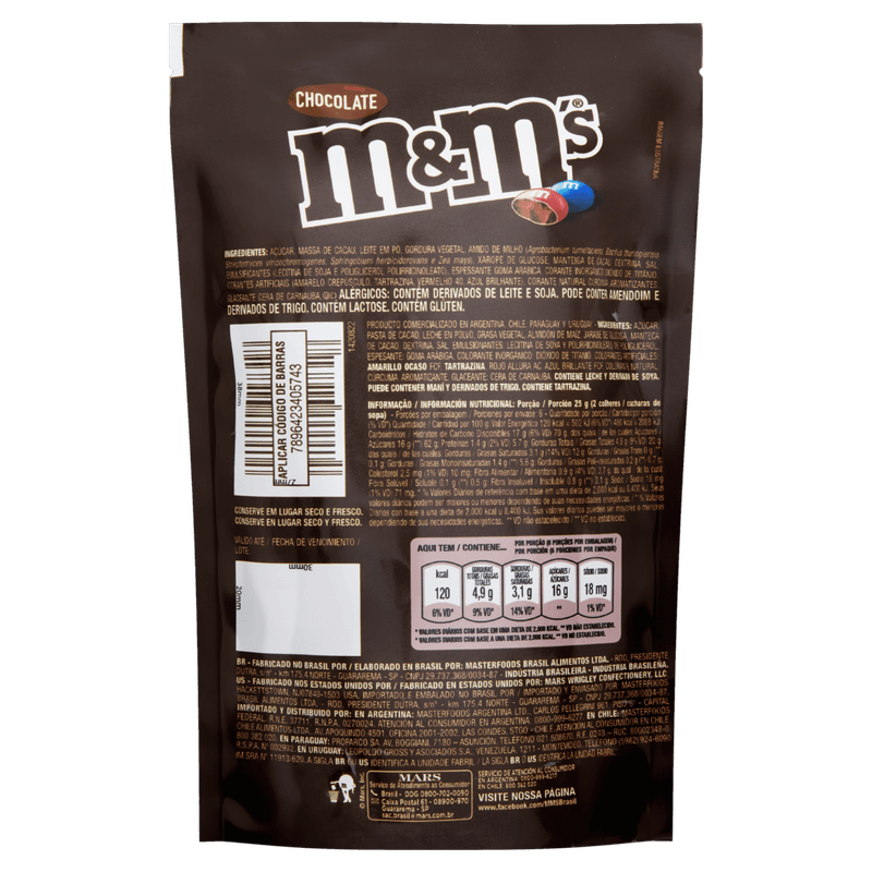 Confeito de Chocolate ao Leite M&M's Sachê 148g