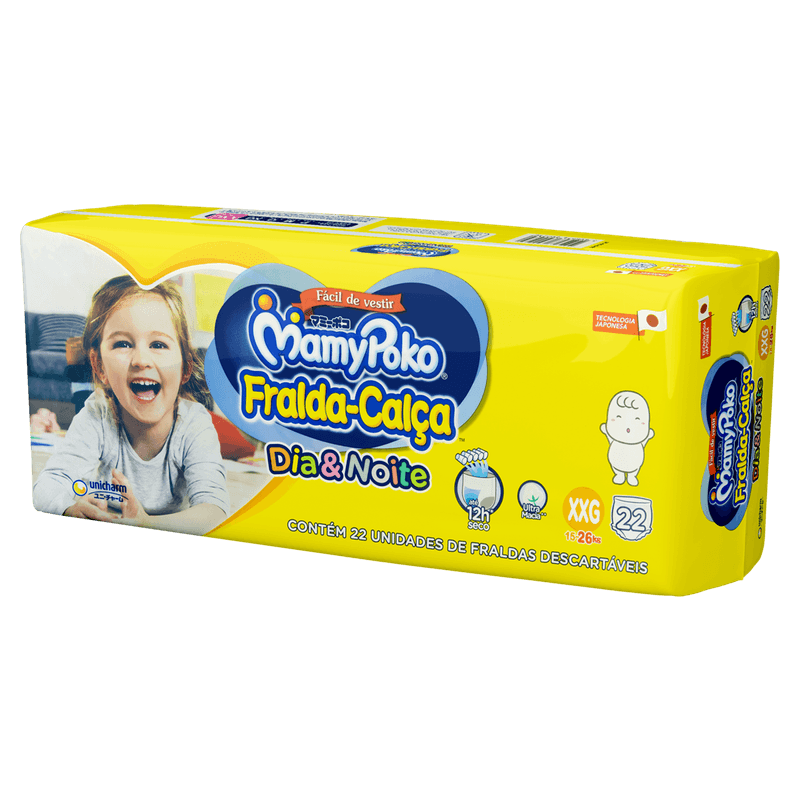 A fralda-calça MamyPoko Dia & Noite XXG é ideal para bebês de 15 a 26 kg, oferecendo praticidade e conforto com seu design que veste como uma calcinha ou cuequinha, sem necessidade de ajuste de fitas. Sua cintura macia e elástica estica até duas vezes, garantindo liberdade de movimento e conforto durante o uso. Com alta capacidade de absorção, suporta até 5 copos de líquido, proporcionando proteção contra vazamentos por até 12 horas, perfeita para uso prolongado, especialmente durante a noite.