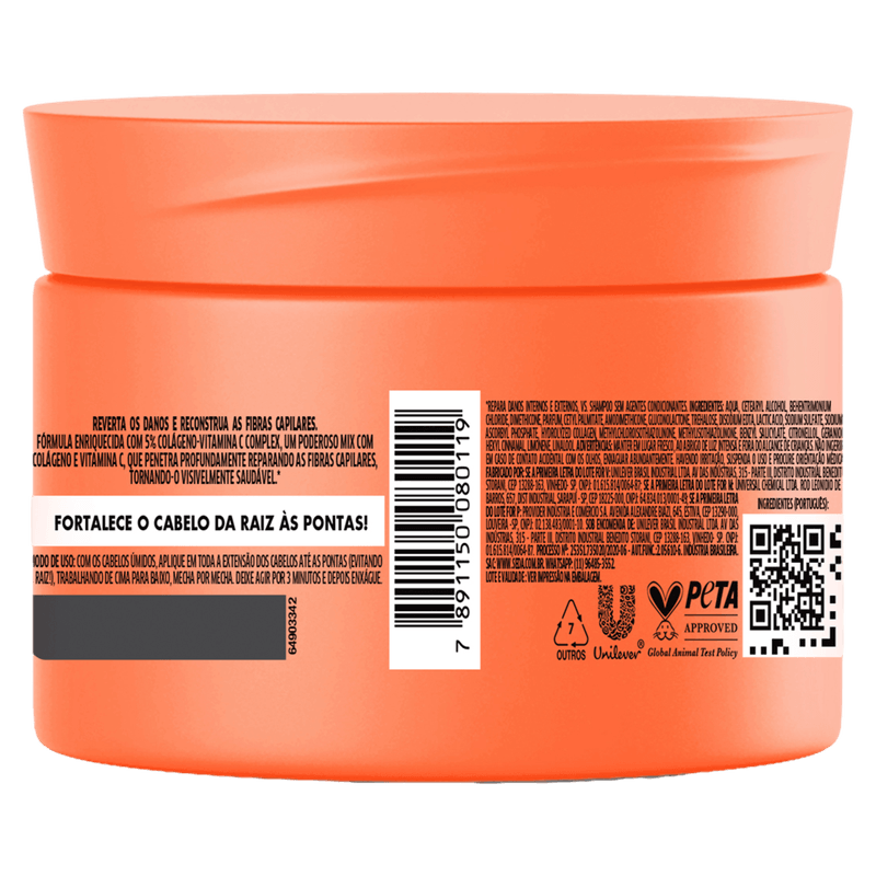 Benefícios:O colágeno proporciona firmeza e ajuda a regenerar fibras capilares enfraquecidas, enquanto a vitamina C, um poderoso antioxidante, protege os fios dos danos externos e estimula a produção de colágeno. O resultado é um cabelo profundamente restaurado e luminoso.