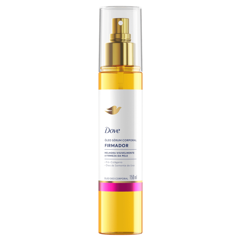O Óleo Sérum Corporal Firmador Pró-Colágeno Dove é um hidratante corporal em spray que combina a tecnologia Pró-Colágeno com óleo de semente de uva para proporcionar firmeza, elasticidade e hidratação intensa à pele. Sua textura leve e de rápida absorção deixa a pele macia, sedosa e com brilho natural, sem sensação oleosa ou pegajosa, ideal para quem busca um cuidado corporal eficaz e prático.