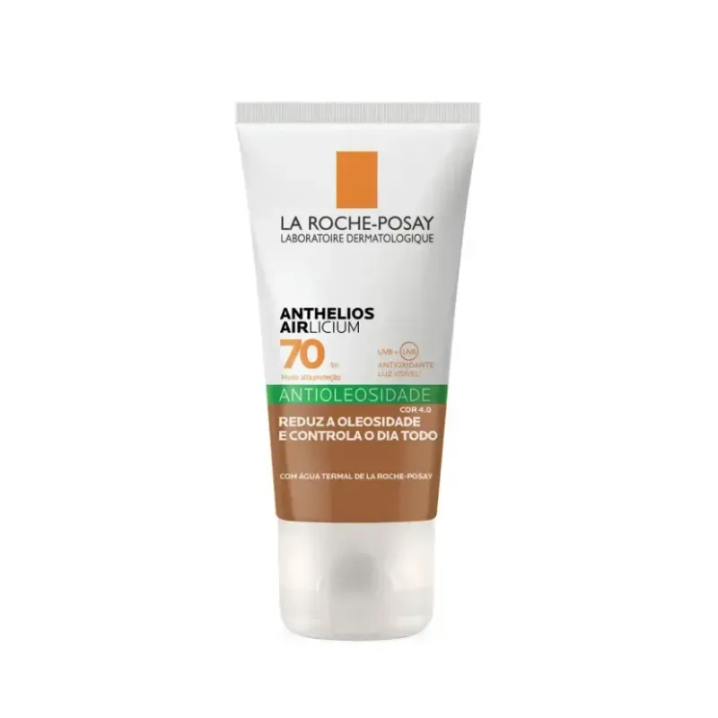 O Protetor Solar Facial com Cor Anthelios Airlicium FPS 70, na tonalidade 4.0, é um protetor solar em creme com alta proteção contra os raios UVA e UVB, indicado para peles oleosas que necessitam de controle de brilho e cobertura natural.