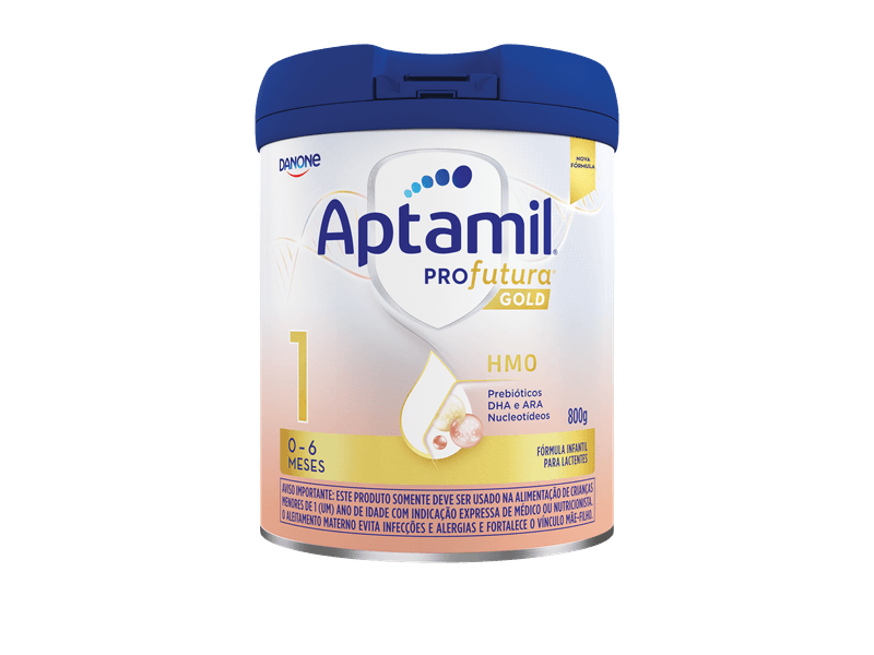 Aptamil Profutura Gold 1 é uma fórmula infantil em pó especialmente desenvolvida para bebês de 0 a 6 meses, ideal para complementar a alimentação quando o aleitamento materno não é possível. Sua composição inclui proteínas lácteas intactas, HMO, DHA, ARA, nucleotídeos e prebióticos como galactooligossacáridos (GOS) e frutooligossacáridos (FOS), que fortalecem o sistema imunológico, promovem o desenvolvimento cerebral e visual, além de regular o trânsito intestinal. Livre de glúten, é uma opção segura e nutritiva para o público-alvo de lactentes nessa faixa etária.