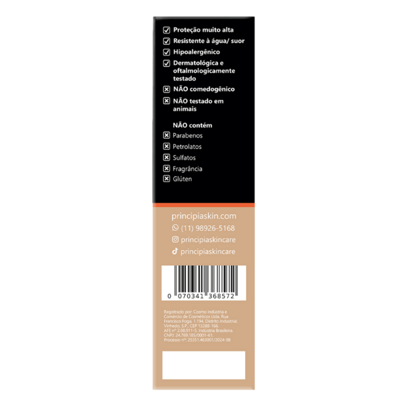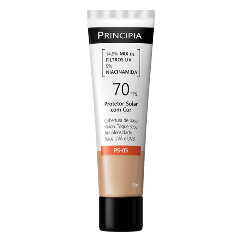 Protetor Solar Facial Fluido Toque Seco Antioleosidade com Cor 2.0 FPS 70 Principia PS-05 Caixa 30ml