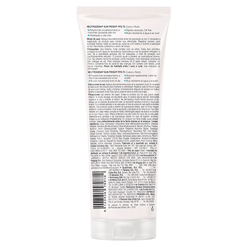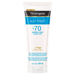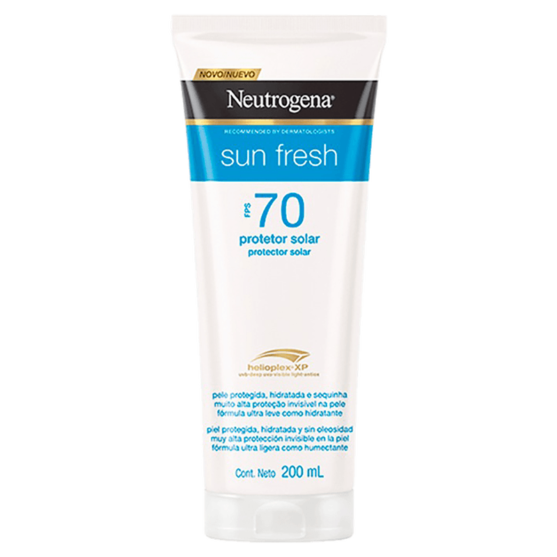 O Protetor Solar Neutrogena Sun Fresh FPS 70 é um protetor solar em loção com fórmula oil free, textura ultraleve e rápida absorção, indicado para proteção contra os raios UVA, UVB e luz visível, mantendo a pele hidratada, fresca e sequinha.